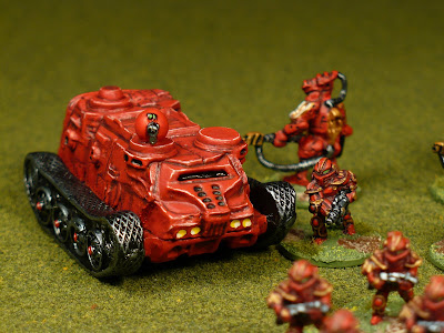 Nevertheless, I like the way they look all done and lined up ready for battle. I even like the Glaive (the tank) despite it's rather ungainly appearance, and the fact that it has no track guards anywhere: Reality bows to Fiction once again.